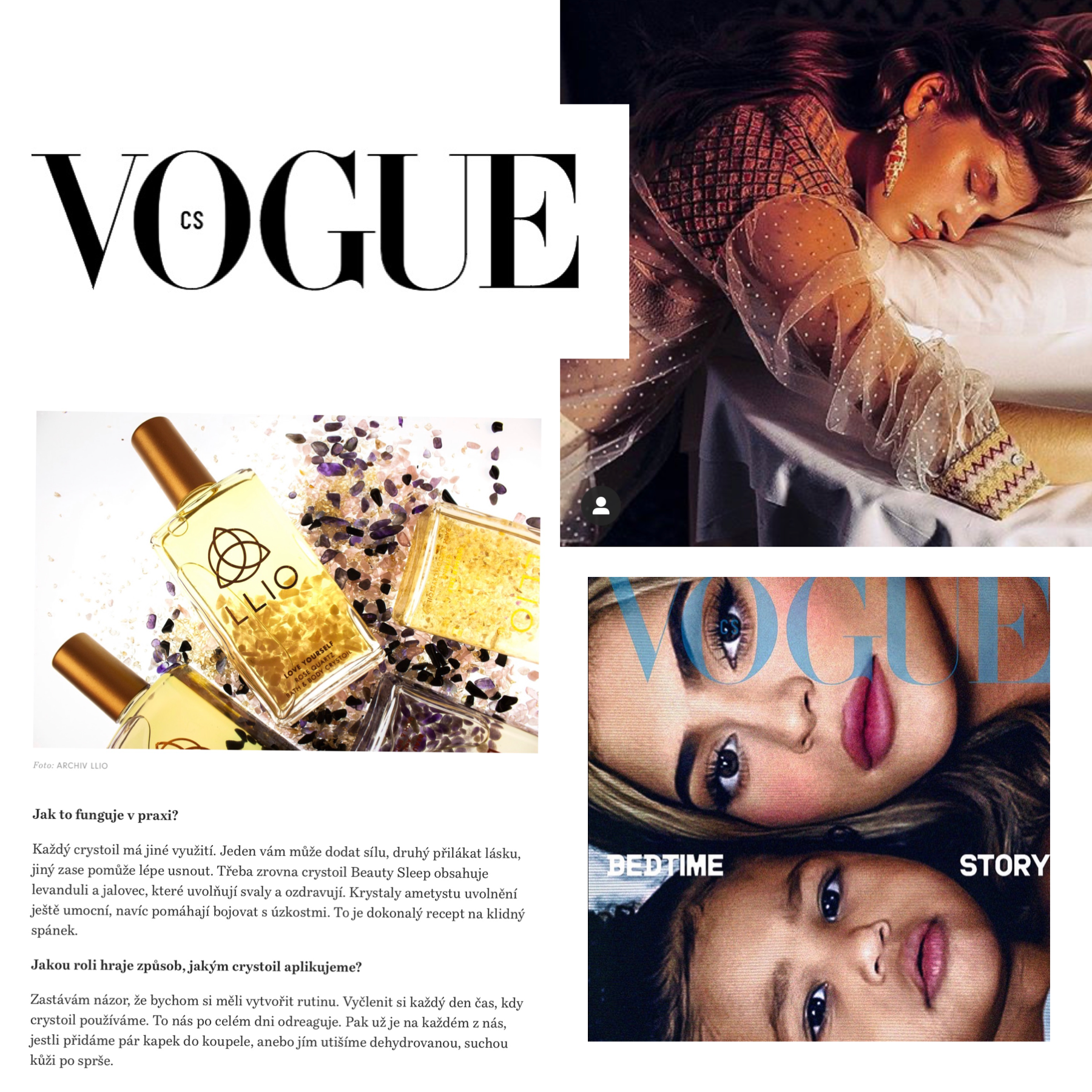 Being featured in a magazine where Kylie Jenner and her daughter Stormi Webster is on the front cover is pretty cool, right? The August edition of Vogue Czechoslovakia was named the ‘Bedtime Issue’ and tackled issues on sleep. The photography in this article is some of our favourite, with Dan Beleiu as photographer. This article features an interview with the LLIO team by Martin Vesa, a wonderful journalist at Vogue to find out more about the brand. We discussed the background of the brand and some of our inspirations that keep us feeling creative and grounded. The article further highlighted LLIO’s ingredients and the ethical nature of our brand which we are very proud of. Being vegan, cruelty-free and sourcing our products sustainably is always our top consideration when creating new products (which may be here sooner than you think). The article featured the Love Yourself Crystoil which is infused with rose quartz, the crystal of self-love and admiration. This oil encourages you to open your heart and connect with your higher heart chakras.